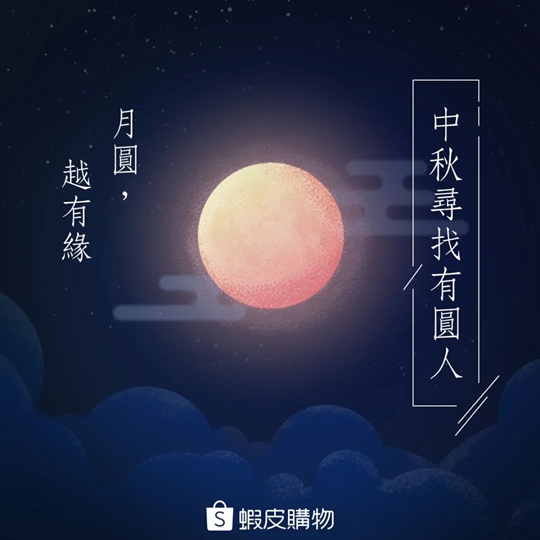 去年中秋的时候,虾皮购物以月饼为创意素材,用谐音梗寻找“有缘人”。