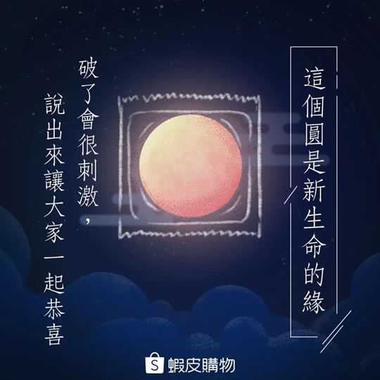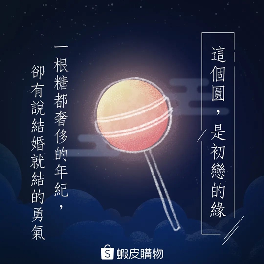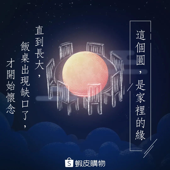 说出来让大家一起恭喜,这个圆是新生命的缘。借月饼寻找“有缘人”,从小时候、到初恋、到迈入职场,步入家庭,不同的圆代表着我们不同的人生轨迹,走心的文案,勾起大众情感共鸣。熟悉虾皮购物的就知道,虾皮购物一直是谐音梗爱好者,产品文案随处可见谐音梗。