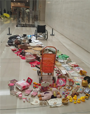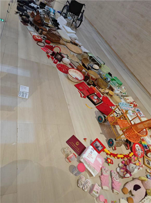 这是一个艺术布景里的麻将桌,右下角依然卑微着写着“损坏罚款”。其实这个作品原本的样子是这样的,据作者的朋友转述,这个布景反映了麻将在家庭中的普及,每个麻将都用了1-2小时来制作,用了十字绣、粘土和纳米胶作为原材料,材质比较软,可以轻轻捏动。还有这个悲剧,所有展品全部丢失,甚至作者用胶水粘到桌子上,20件实物一件没给作者剩下!