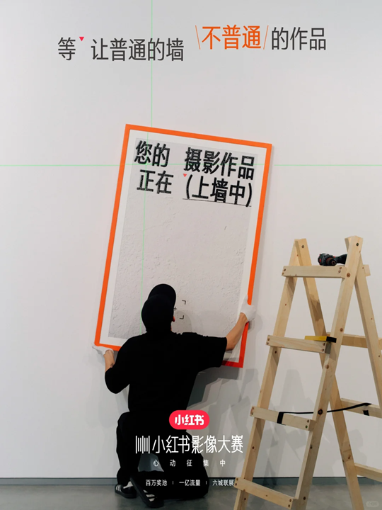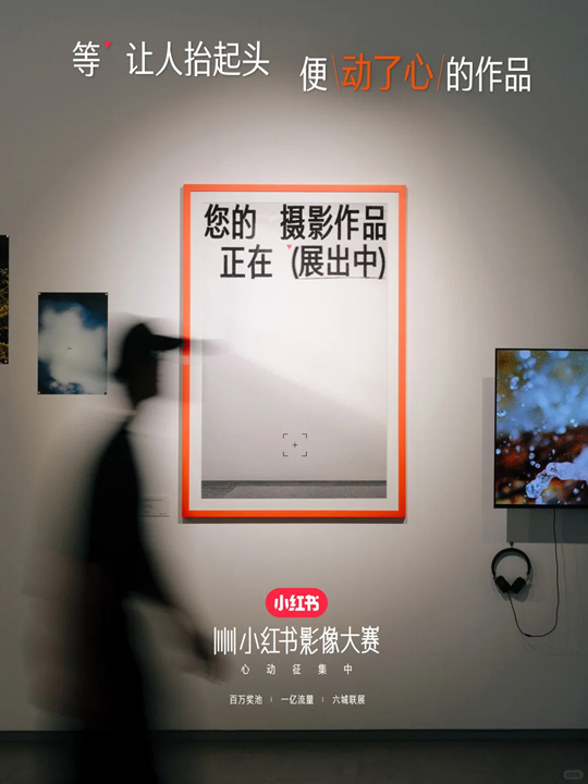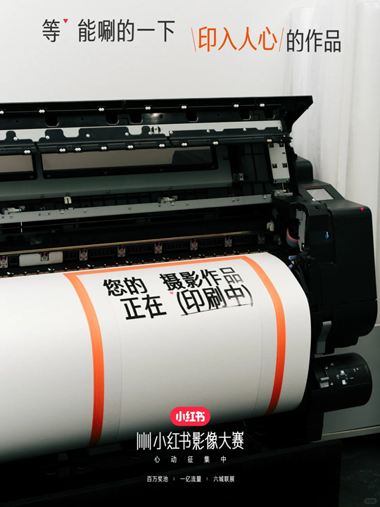 这套是小红摄影大赛的征集文案,就是告诉你有这个活动,快来参加的意思。创意展现一个摄影作品从印刷、到装车、到上墙、到展出的过程。