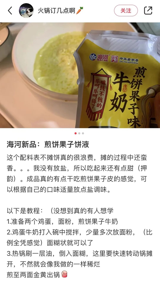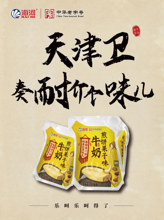 最近,海河大力推出了新口味产品——煎饼果子味牛奶!