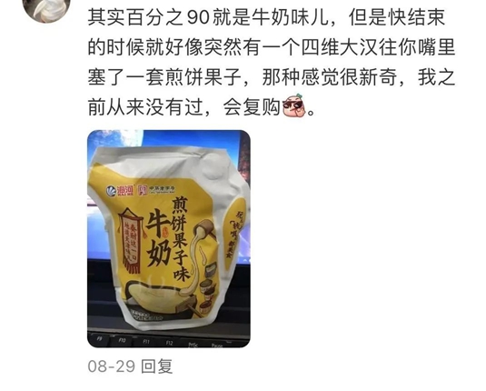 精选君一个脑转弯,你们说要是买了煎饼果子的朋友又恰好配上了煎饼果子味的牛奶,那他是不是相当于吃了两个煎饼果子?