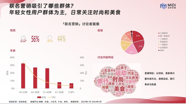 联名营销活动尤其受到年轻消费者群体的欢迎,这一群体主要包括对时尚敏感和追求生活品质的年轻女性。他们对联名产品的高度兴趣不仅体现在购买行为上,还体现在对这些产品的社交媒体讨论和分享上。这一现象说明,联名产品的设计和营销策略需要紧密结合这一群体的生活方式和审美趋势。