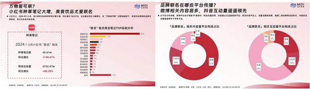 小红书作为一个以生活方式分享为主的平台,14%的互动量占比也展示了其在联名营销中的重要性。品牌通过在小红书分享高质量的内容笔记和用户互动,有效地提升了消费者对联名产品的认知度和购买欲望。例如,通过分享使用联名产品的生活场景图片和视频,增加了产品的吸引力,引导消费者进行讨论和分享。