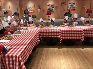 透明厨房,菜品制作过程全程可见,那就是让父母们感到放心安全的设计,也给孩子们增加了看点和趣味;